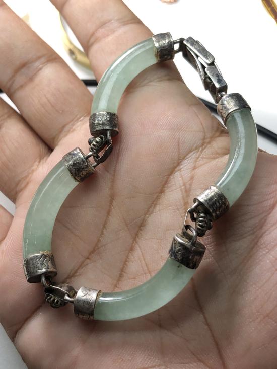 สินหลุดจำนำ กำไลหยกจับเงิน (ชำรุด ปล.กาวจิวเวลลี่เสื่อมอายุ) |
