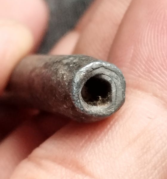 ตะกรุดเนื้อตะกั่วจารในไม่ทราบที่ 2 นิ้วครึ่ง |