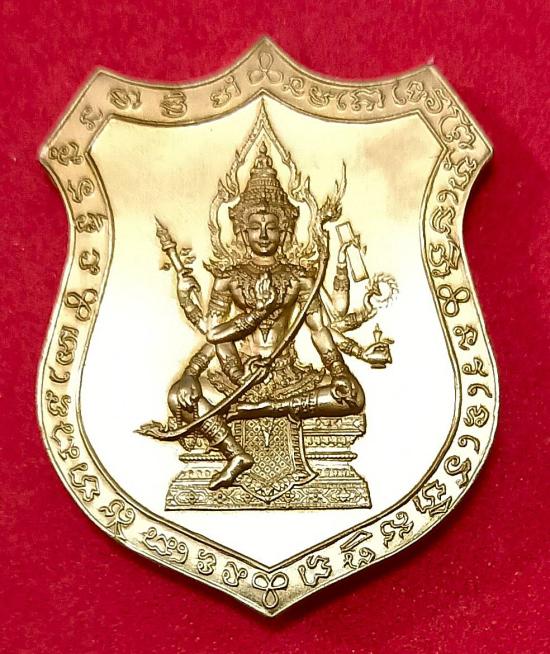 ท้าวมหาพรหม เจ้าสัวพันล้าน เหรียญโล่ห์สัมฤทธิ์ซาติน พิธีวัดคลังทอง อยุธยาปี๖๘ สวยชัด |