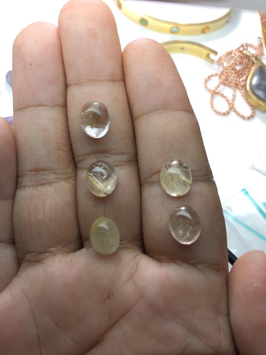 ไหมทองเจียระไนหลังเบี้ย 5 เม็ด 13.9 กะรัต ( แถมไหมทองแบบยังไม่เจียระไนและอเมทิสก้อนดิบอีก 100 กะรัต) |