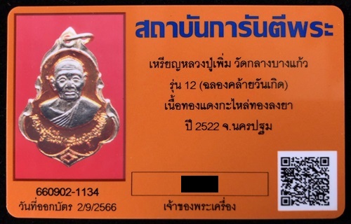 เหรียญปาดตาล หลวงปู่เพิ่ม วัดกลางบางแก้ว รุ่น 12 ( ฉลองคล้ายวันเกิด ) กะไหล่ทองลงยา ปี 2522 จ.นครปฐม สภาพสวย มาพร้อมบัตรรับรองครับ