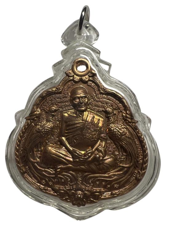 เหรียญรูปเหมือน พญาไก่แก้วขันเรียกทรัพย์ เนื้อทองแดง หลวงพ่อแดง ดวงเศรษฐี วัดห้วยฉลอง