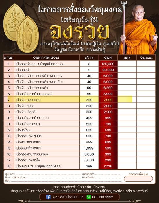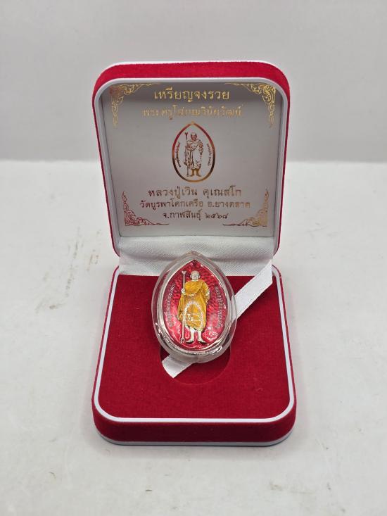 วัดใจราคา เหรียญ ยืน รุ่น จงรวย ปี68 หลวงปู่เวิน คุเณสโก วัดบูรพาโคกเครือ จ.กาฬสินธุ์ หลวงปู่มหาศิลาร่วมปลุกเสก เนื้อเงินลงยาแดง เลข ๑๒๙ ราคาจอง 2999 บาท