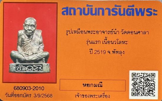 รูปเหมือนพระอาจารย์นำ วัดดอนศาลา รุ่นแรก เนื้อนวโลหะ ปี 2519 จ.พัทลุง (พร้อมบัตรรับรองจีพระ)