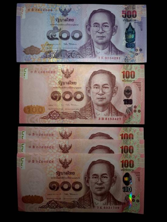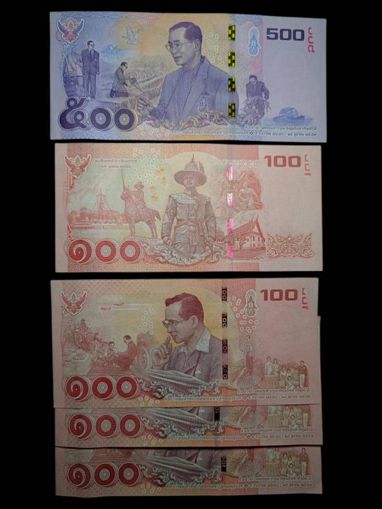 | ธนบัตรแบงค์ 500 บาท, 100 บาท, 50 บาท, 20 บาท มูลค่ารวมทั้งหมด 1,540 บาท |