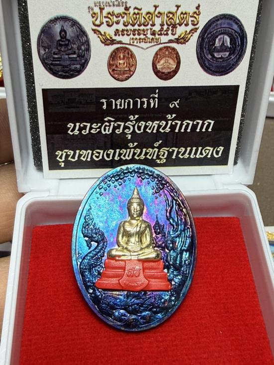 ((วัดสร้าง))เหรียญหลวงพ่อโสธรรุ่นประวัติศาสตร์ครบรอบ 255 ปี วาระพิเศษ เนื้อนวะโลหะผิวรุ้งหน้ากากชุบทองเพ้นท์ ฐานแดง โค้ตเลข 137พร้อมกล่องเดิม |
