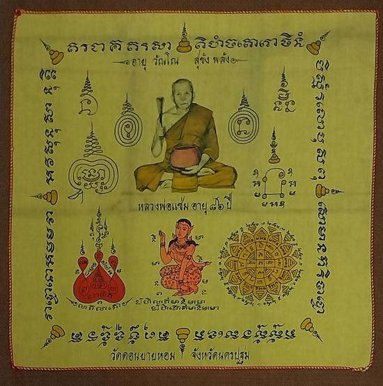 ผ้ายันต์พรมน้ำมนต์ หลวงพ่อแช่ม วัดดอนยายหอม อายุ 86 ปี