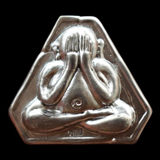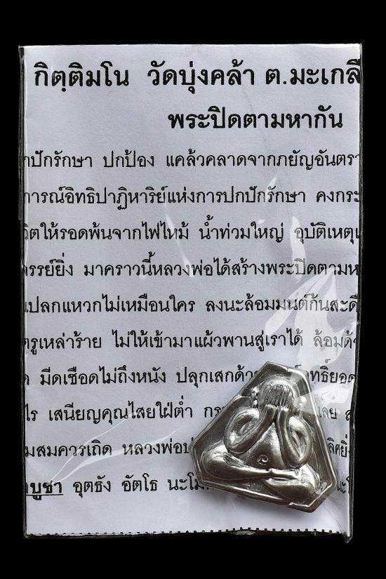 พระปิดตามหากัน เนื้อตะกั่วหล่อ หลังจารยันต์ หลวงพ่อมาโนช วัดบุ่งคล้า นครราชสีมา ปี 2555 มีซองจากวัด