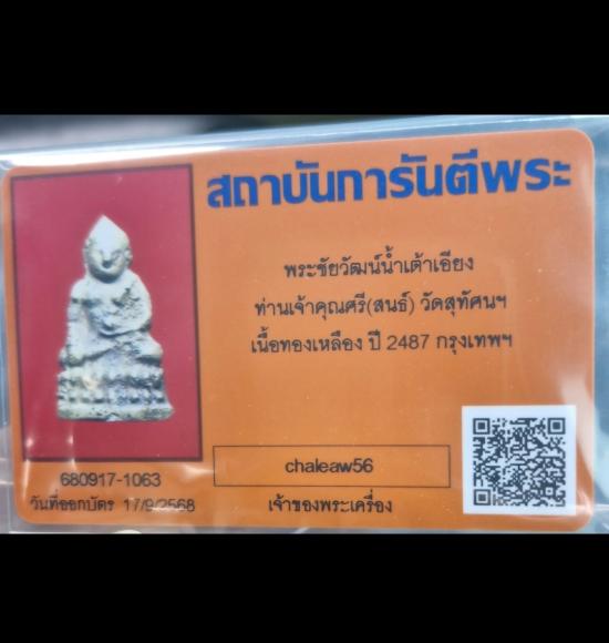 พระชัยวัฒน์น้ำเต้าเอียง ท่านเจ้าคุณศรี(สนธ์) วัดสัทัศนฯ เนื้อทองเหลือง ปี2487 จ.กรุงเทพฯ