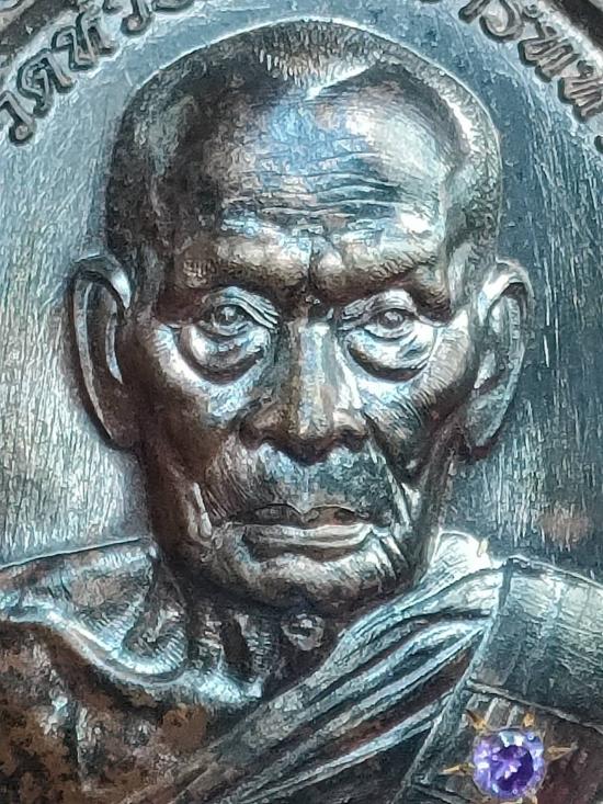 เหรียญชนะจน65 หลวงพ่อพัฒน์ วัดห้วยด้วน เนื้อชนวนโบราณ ฝังพลอยม่วง เลข17 เลยโซนวันเกิด จมูกร้อยมีกล่อง