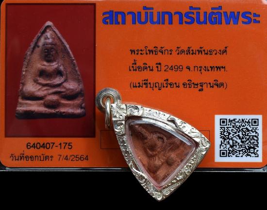 พระโพธิจักร หลังยันต์ เนื้อดินผสมมวลสารศักดิ์สิทธิ์ ปี 2499 (คุณย่าบุญเรือน อธิษฐานจิต) วัดสัมพันธวงศ์ กรุงเทพฯ + บัตรรับรองพระแท้การันตีพระ (ใส่ตลับเงินแท้ ร้านเจ๊เล็ก ทวีทรัพย์ พันธ์ทิพย์งามวงศ์วาน มา 900.- พร้อมห้อยบูชา แต่ไม่เคยผ่านการใช้บูชา)