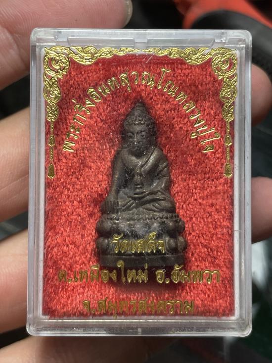 พระกริ่งอินทสุวัณโณ หลวงปู่ใจ วัดเสด็จ จ.สมุทรสงคราม สภาพสวยเดิมๆพร้อมกล่องคับ