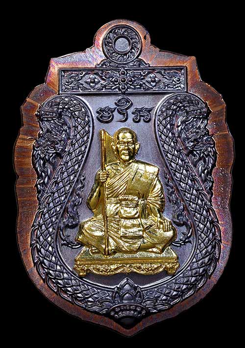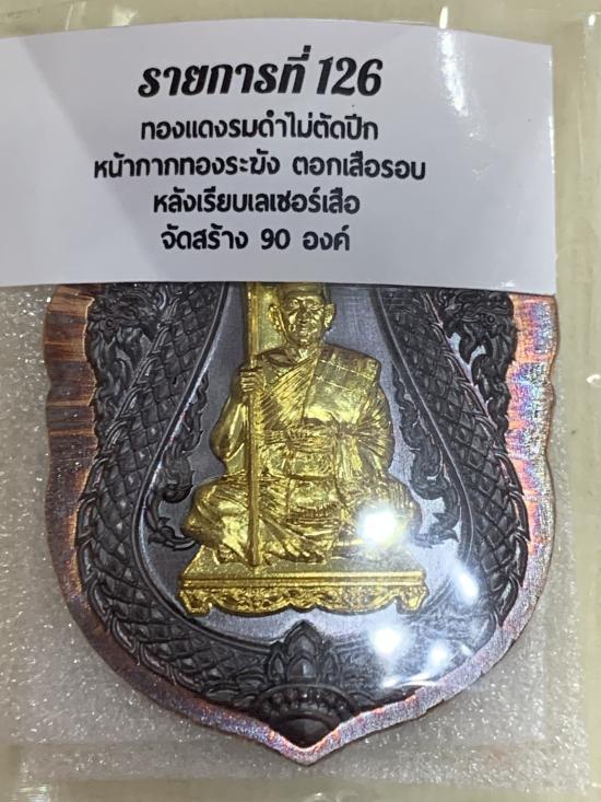 1 ใน 90 เหรียญเสมาพญาเสืออุดมทรัพย์ พระอาจารย์ประสูติ (หลวงพ่อประสูติ) วัดในเตา จ.ตรัง เนื้อทองแดงรมดำไม่ตัดปีกหน้ากากทองระฆังตอกเสือรอบหลังเรียบเลเซอร์เสือ เลขเสวยNO.53 ครับ