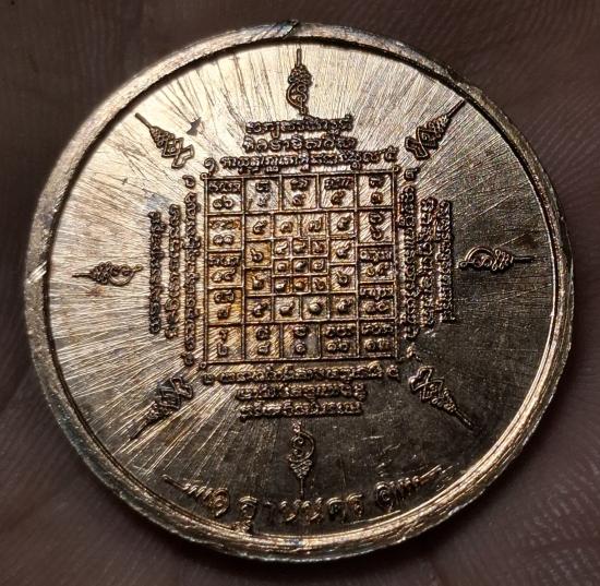 เหรียญตั้งบ้านตั้งเมือง หลังยันต์มหาอริยโสฬจใหญ่(ยันต์ฐานนคร คุุ้มครองหนุนดวงชะตาตั้งบ้านตั้งเมือง)หลวงพ่อเล็ก วัดท่าขนุน อฐิษฐานจิตปลุกเสก เนื้อทองแดง |