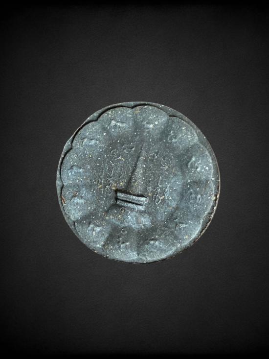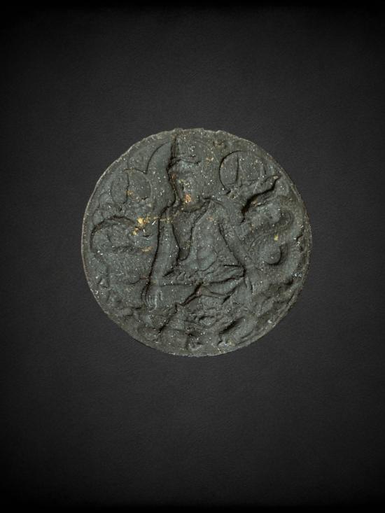 พิมพ์ทรงกลม ด้านหน้าเป็นองค์จตุคามรามเทพทรงเครื่องมหาราช