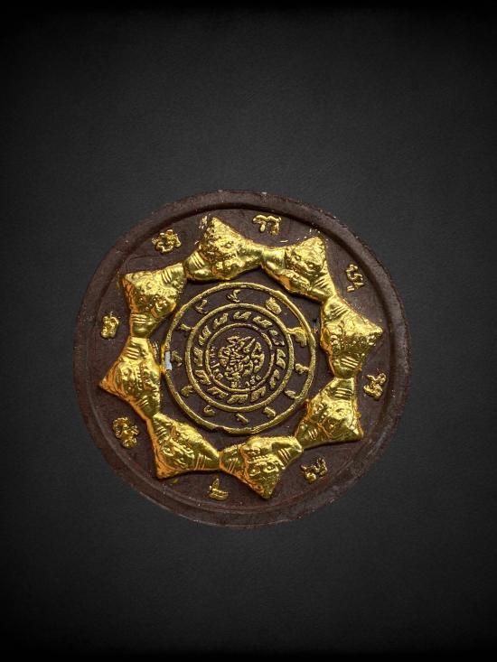 ด้านหลัง: ยันต์มหาโชค มหาชัย ล้อมรอบด้วยหัวพานาค 8 เศียรปิดทองงามตา