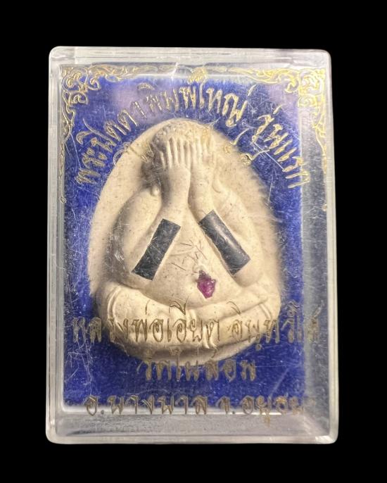 พระปิดตาจัมโบ้รุ่นแรก หลวงพ่อเอียด วัดไผ่ล้อม อ.บางบาล จ.อยุธยา ปี 48 ตะกรุดเงิน ฝังพลอย กล่องเดิม