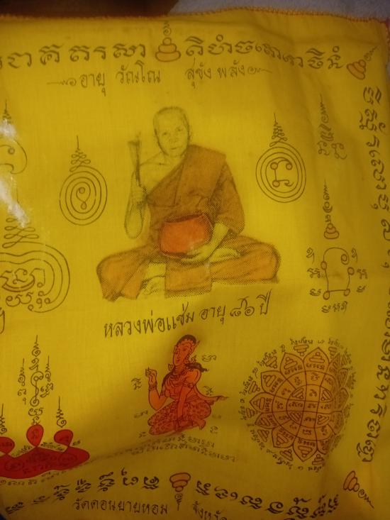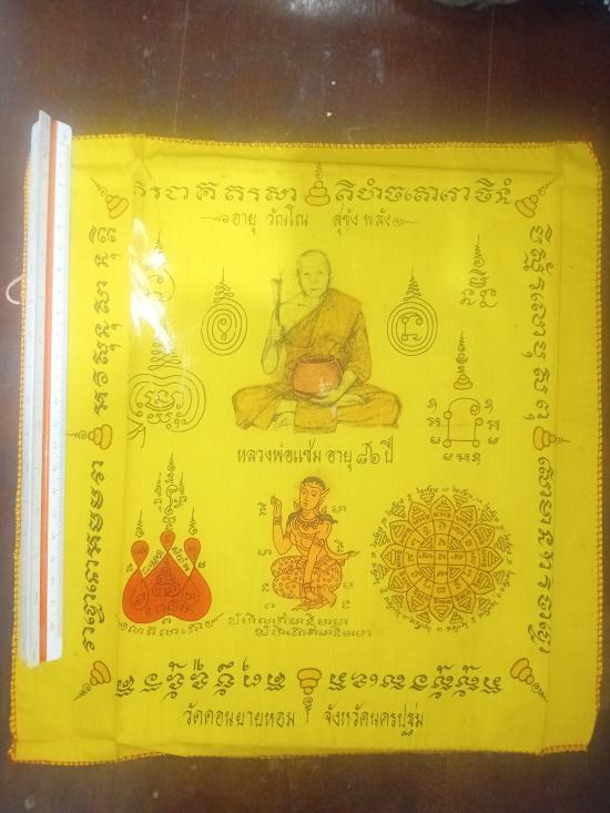 ผ้ายันต์พรมน้ำมนต์ หลวงพ่อแช่ม วัดดอนยายหอม จ.นครปฐม |