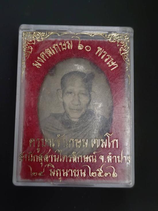ล็อคเก็ต หลวงพ่อเกษม เขมโก รุ่นมงคลเกษม 81 หลังหุ้มแผ่นทองแดง พร้อมกล่องเดิม ปลุกเสกเมื่อวันที่ 23 ต.ค. 35 ภายในบรรจุมวลสาร 9 มงคลศักดิ์สิทธิ์ของหลวงพ่อไว้ ประกอบด้วย