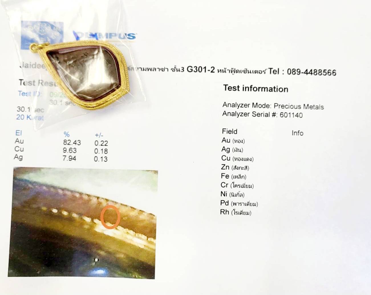กรอบทองคำแท้ ทรงหยดน้ำ ตีเกลียวคู่ด้านข้าง น้ำหนักประมาณ 5.05 กรัม เปอร์เซ็นสูง 82.43%