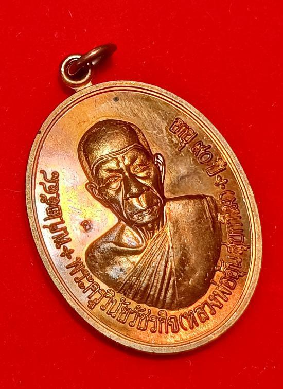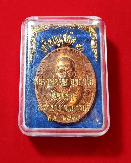 เหรียญแซยิด 90 หลวงพ่ออุ้น วัดตาลกง จ.เพชรบุรี เนื้อทองแดงผิวไฟ ปี 2548 สวยเดิม พร้อมกล่อง