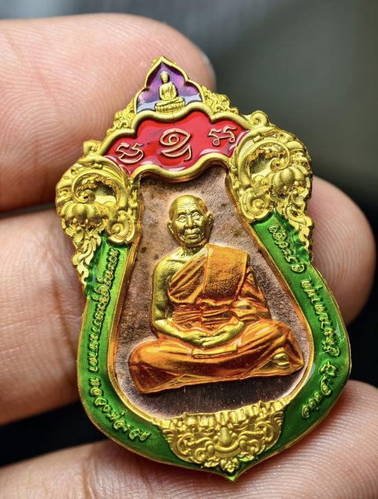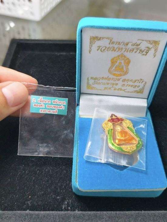 เหรียญไตรมาส ๘๗ รวยมหาเศรษฐี 2564 เนื้อนากหน้ากากทองคำขอบทองคำลงยาสามสี หมายเลข 8 หลวงพ่อรวย วัดมาบตาพุด จ.ระยอง