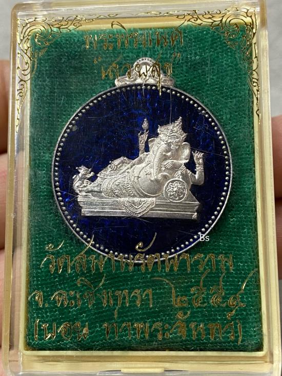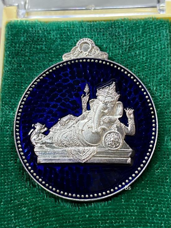 เหรียญพระพิฆเนศ รุ่นเสวยสุข วัดสมานรัตนาราม ปี59 เนื้อเงินแท้ลงยา พร้อมกล่องเดิม