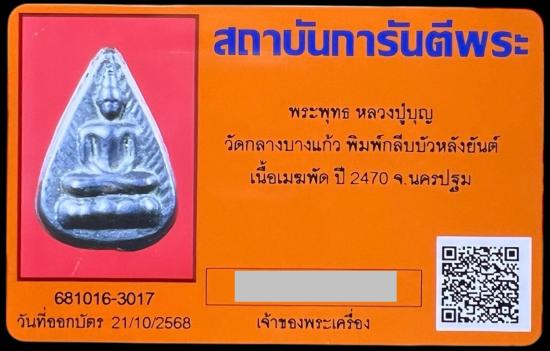 พระกลีบบัวหลวงปู่บุญ เนื้อเมฆพัตร พิมพ์หลังข้าวหลามตัด สร้างราว ปี2470 พระชุดนี้เป็นพระพิมพ์มาตราฐาน |
