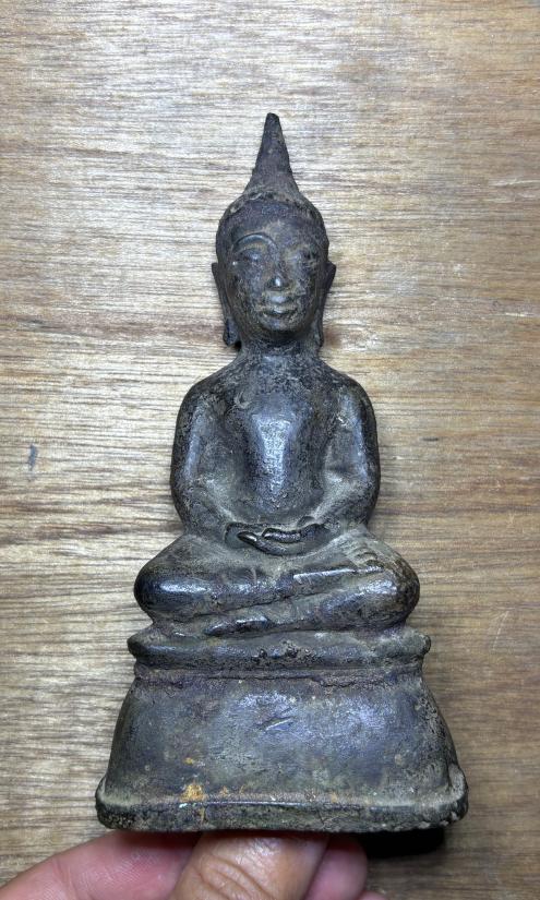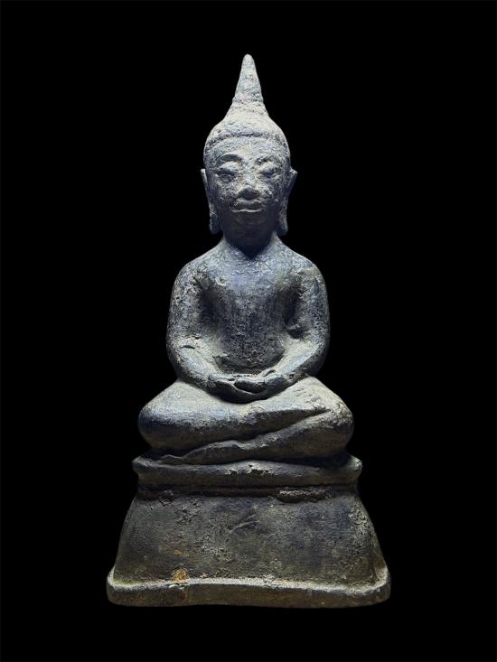 พระบูชาสมัยอยุธยา ปางสมาธิ ขนาดหน้าตัก 2 นิ้ว เนื้อสำริด ผิวเดิม สนิมเขียวบางจุด มีคราบรักยางไม้ แสดงว่าผ่านการลงรักปิดทองมา ใต้ฐานดินเดิมมาเต็มๆ สภาพสมบูรณ์แข็งแรง โดยรวมถือว่าพอสวย ราคาไม่แรง เหมาะสำหรับผู้ที่จะเก็บสะสม หรือนำไปศึกษาต่อ