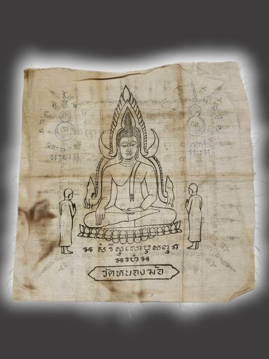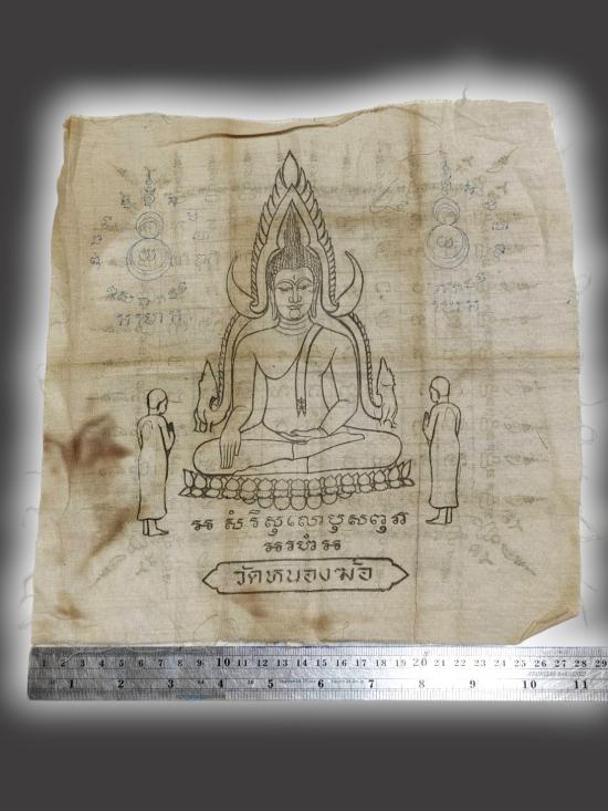 A3041.หายาก ผ้ายันต์พระพุทธชินราช วัดหนองฆ้อ ระยอง ผ้าเก่า เคาะเดียวเเดง |