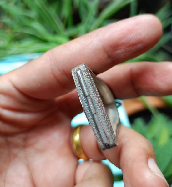 ตลับเงินเปอร์เซ็นสูง สั่งตัด ใส่เหรียญระฆัง หลวงพ่อเกษม ตลับสวยครับ |