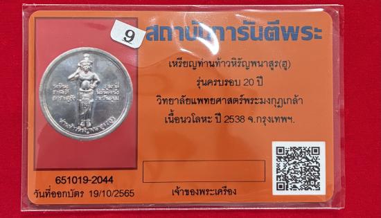 เหรียญท่านท้าวหิรัญพนาสูร(ฮู) รุ่นครบรอบ 20 ปี วิทยาลัยแพทยศาสตร์พระมงกุฎเกล้า ปี 2538 เนื้อนวะ กล่องเดิม พร้อมบัตรรับรองพระแท้ (รายการที่ 2)
