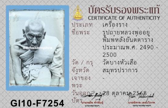 รูปถ่ายหลวงพ่ออยู่ วัดบางหัวเสือ หลังตาราง พร้อมบัตรสมาคม