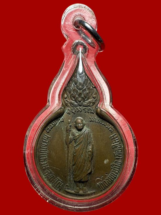 เหรียญยืนถือไม้เท้า หลวงเหรียญหลวงปู่แหวน สุจิณฺโณ หลังรวมใจ ปี18 วัดดอยแม่ปั๋ง อ.พร้าว จ.เชียงใหม่ เนื้อทองแดง ตอกโค๊ต |