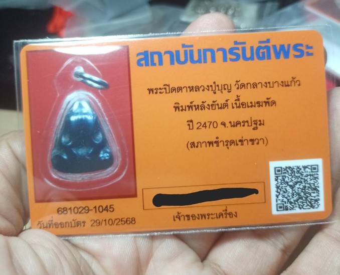 พระปิดตาหลวงปู่บุญวัดกลางบางแก้วปี2470เนื้อเมฆพัดหลังยันต์องค์จริงยังสวยเสียเดิม