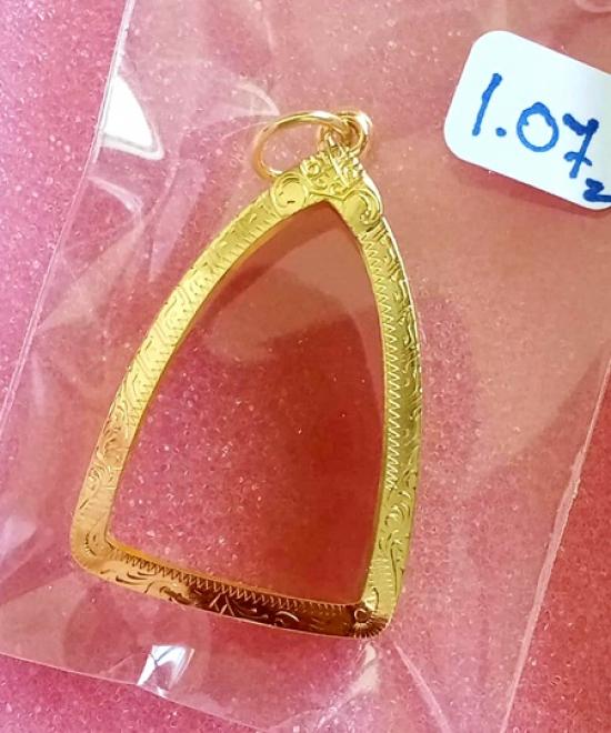 กรอบทองคำแท้ยกซุ้มสิงห์ ใส่กลีบบัวรุน1/รุ่น1หลวงปู่ทวด/พระชัย/กริ่ง/แม่ชีบุญเรือน/ที่มีขนาดใกล้เคียงจอในกว้าง1.7ซม.สูง2.6ซม.พระกริ่ง/ชัยที่ใส่ต้อง1.5*2.4น้ำหนัก 1.07กรัม |