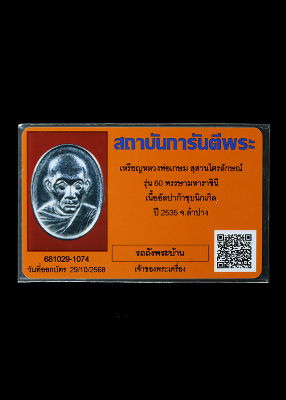เหรียญหลวงพ่อเกษม พร้อมบัตรรับรองจากเว็บครับ พระบ้านผมเหมามาเยอะ วัดใจเท่าไหนเท่านั้นทุกรายการครับ |