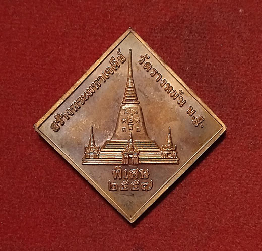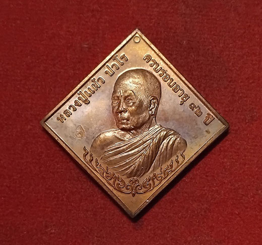 เหรียญข้าวหลามตัด รุ่นแรก ครบรอบอายุ ๙๒ ปี หลวงปู่แผ้ว วัดรางหมัน จ.นครปฐม ปี 57 เนื้อทองแดงผิวไฟ สภาพสวย