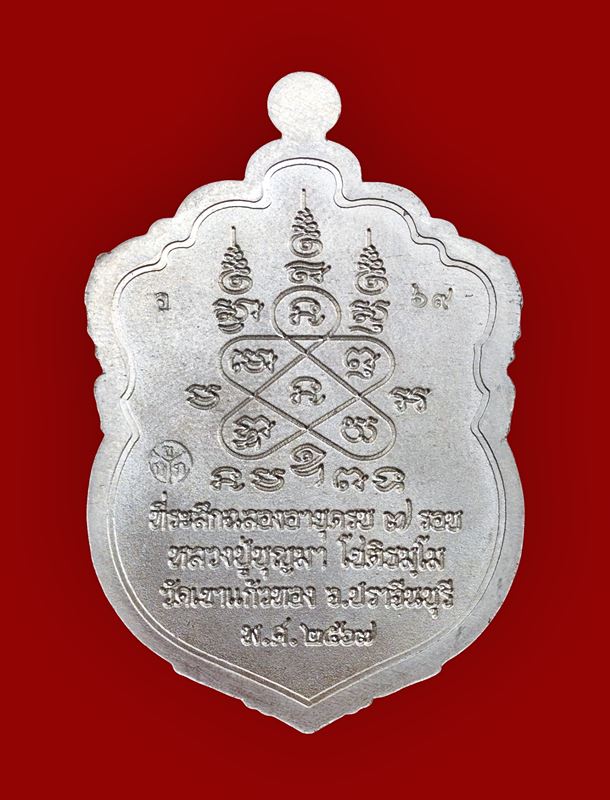 +!!เคาะเดียวllดง ตลอดสาย!!+ เหรียญเสมาลายเซ็น (7 รอบ) หลวงปู่บุญมา สำนักสงฆ์เขาแก้วทอง (เนื้ออัลปาก้า ขอบฝังพลอยนพเก้า เลขสวย 69) สร้างแค่ 70 เหรียญ พร้อมกล่องเดิมครับ
