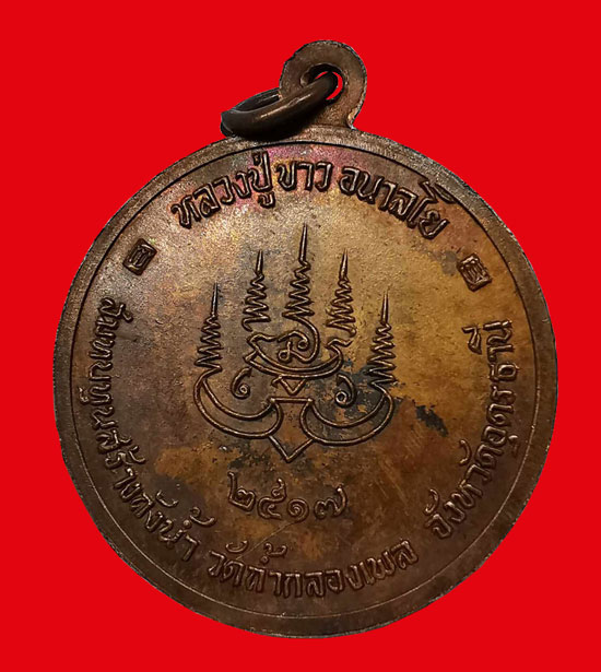เหรียญหลวงปู่ขาว วัดถ้ำกลองเพล รุ่นสร้างถังน้ำ เนื้อทองแดง ห่วงเดิม(ตอกโค๊ต) ปี2517 จ.อุดรธานี