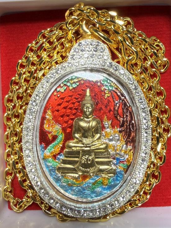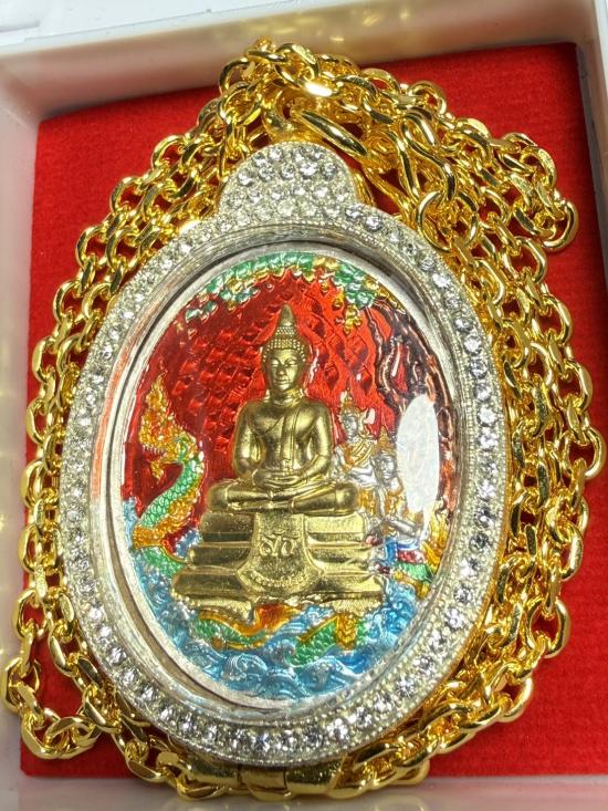 ((เงินหน้าทองคำ))(วัดสร้าง)เหรียญหลวงพ่อโสธรรุ่นประวัติศาสตร์ครบรอบ 255 ปี วาระพิเศษ เนื้อเงินลงยามาสเตอร์พีชแดงหน้ากากทองคำเลี่ยมกรอบทองอิตาลีพร้อมสร้อยทองอิตาลี โค้ตเลข 38 พร้อมกล่องเดิม