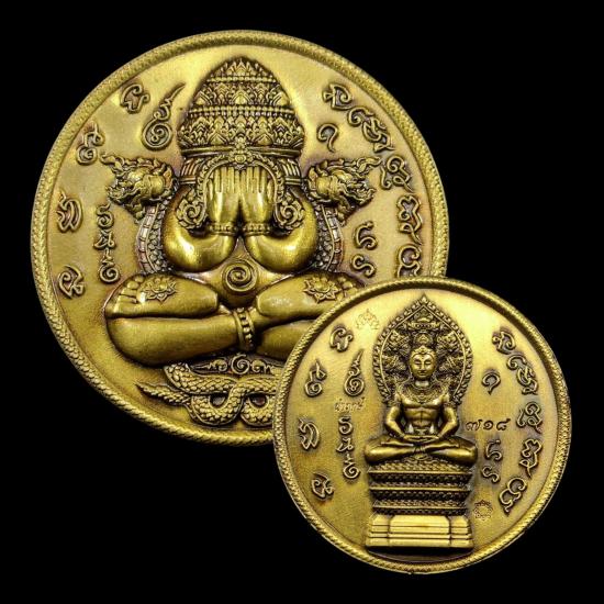 ** ชุด ทองคำนำฤกษ์ ตอกนำฤกษ์ ** พระปิดตาพังพระกาฬ รุ่น เจ้าสัวพันล้าน โดย บอยท่าพระจันทร์ เนื้อ ทองระฆังซาตินพิมพ์2หน้า เลข 718 พร้อมกล่อง |