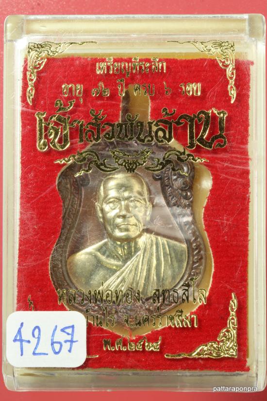 เหรียญหลวงพ่อทอง รุ่นเจ้าสัวพันล้าน บอยท่าพระจันทร์ ปี 2564 เนื้อทองแดงหน้ากากอัลปาก้า มีจารหลวงพ่อ หมายเลข 4267