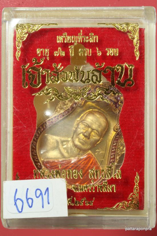 เหรียญหลวงพ่อทอง รุ่นเจ้าสัวพันล้าน บอยท่าพระจันทร์ ปี 2564 เนื้อสัตตะลงยาจีวรลงยาขอบ มีจารหลวงพ่อ หมายเลข 6691