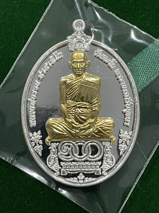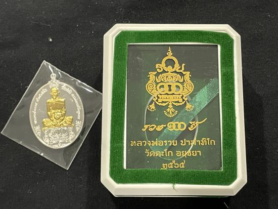 เหรียญ รวย 100 ปี หลวงพ่อรวย วัดตะโก จังหวัดอยุธยา ปี 2565 เนื้อเงินหน้ากากทองคำ หมายเลข 85 พร้อมกล่อง