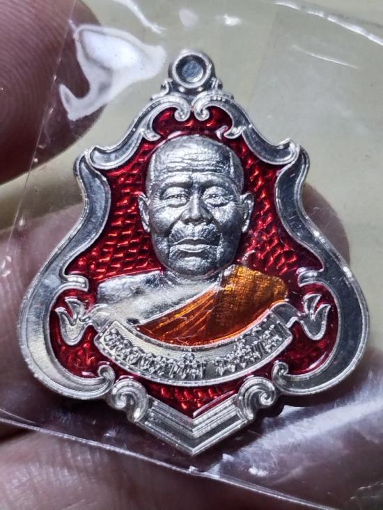 เหรียญมหาลาภเงินไหลนองทองไหลมา หลวงตาขึม วัดผักขะ จ.ศรีสะเกษ เนื้อเงินลงยาแดงเลข 2 หลัก