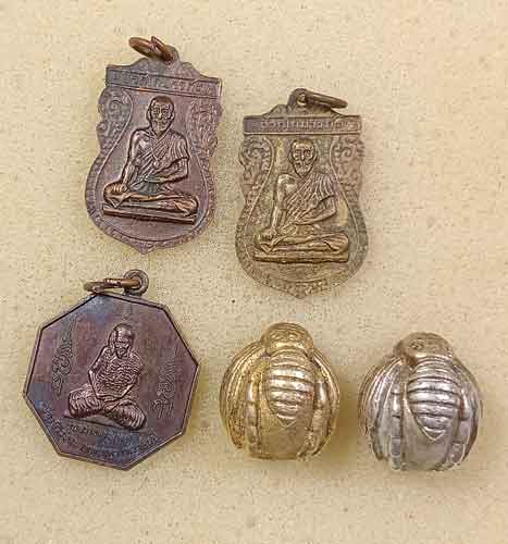 เหรียญมหาฤาษีศักดิ์สิทธิ์ พ่อแก่หลังบรมครูหมอชีวกโกมารทัต 2 เหรียญ +เหรียญปู่ฤาษีวีระตะเทพ นาคา เทวาศิลป์ กาญจนบุรี +ลูกอมต่อเงิน-ทอง วัดแค สุพรรณฯ 2 ลูก +ปลาตะเพียนเงินสะพัดทองร่ำรวย วัดป่าพุทธญาณ |