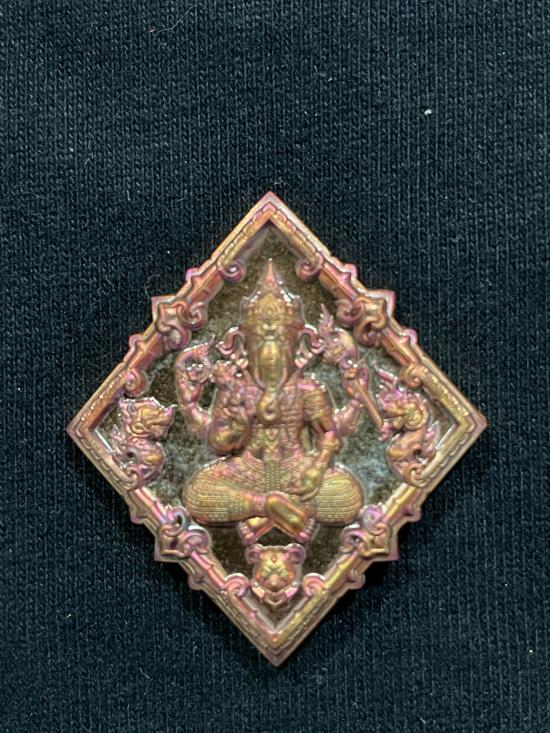 พิฆเนศมงคลมหาเศรษฐี วัดพระธาตุดอยสุเทพ จังหวัดเชียงใหม่ เนื้อทองแดงผิวรุ้งหลังหน้ากากทองพระธาตุ หมายเลข 1323 พร้อมกล่อง |