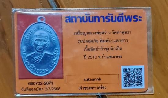 เหรียญหลวงพ่อสว่าง วัดท่าพุทรา พิมพ์บ่าแตกยาว ปี2510 เลี่ยมทองพร้อมบัตรรับรอง