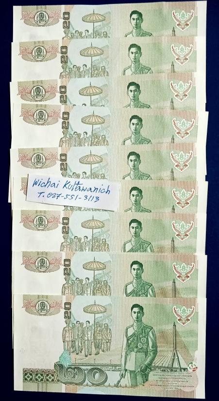 ธนบัตร 20 บาทแบบ 15 ชุด 9หน้า-9หลัง เลขสวย |